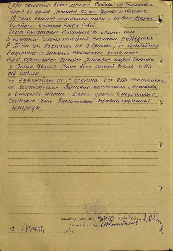 «Взятый с берега, взамен обгоревшего Дъяконова, механик Медведев»