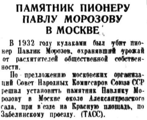 Куда (и когда) дели памятник Павлику Морозову?