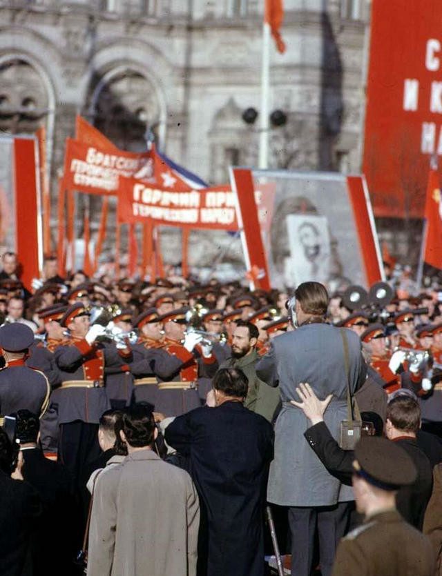 На всю жизнь запомнил ТУ демонстрацию и парад на Красной площади. Отца должны были наградить прав.наградой — ну и предложили на выбор, а он попросил (в качестве награды) Спец. пропуск на Красную площадь НО ОБЯЗАТЕЛЬНО С ДЕТЬМИ — ему ДАЛИ такой пропуск. Стояли мы почти напротив Мавзолея, а рядом была трибуна с кубинскими студентами (между трибунами был «зазор» по больше метра), на голове у меня был берет (правда коричневый), когда началась демонстрация я (КАК И ВСЕ) кричал «ВИВА КУБА — ЯНКИ НОУ», студенты заметили меня (так искренне я кричал) и (не спросясь ни кого) перетащили меня к себе на трибуну, дали в руки кубинский флаг, которым я и размахивал приветствуя Фиделя. Говорят меня по ТВ в репортаже показывали (но сам я не видел). Когда меня перетянули отец чуть инфаркт НЕ получил (он там кучу бумаг на подписывал- «Мол отвечает, что ни-ни»), но пронесло, хотя инфаркт чуть позже получил, да и умер в 61. Я с тех пор почти НИКОГДА не нашу других головных уборов кроме беретов. «Куба любовь моя» — «Куба Фидель и Я», ИСКРЕННЕ рад, что у них на Кубе ВСЁ получалось.