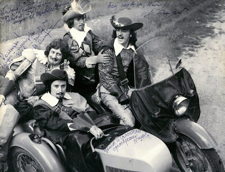 Фотопробы Ю. Соломина, В. Ливанова и В. Смехова на роль АтосаИ тогда Хилькевич вспомнил другого исполнителя — актера «Таганки» Вениамина Смехова, который поразил его в роли Воланда в спектакле «Мастер и Маргарита».