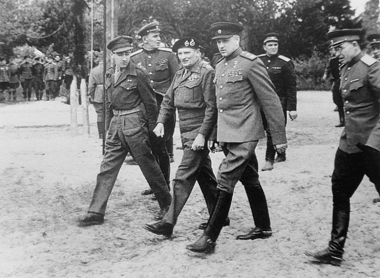 Маршал К.К. Рокоссовский и фельдмаршал Б. Монтгомери на встрече в Северной Германии