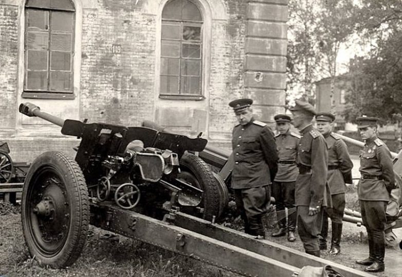 Л. А. Говоров осматривает трофейные орудия. Ленинград, 1943 г.