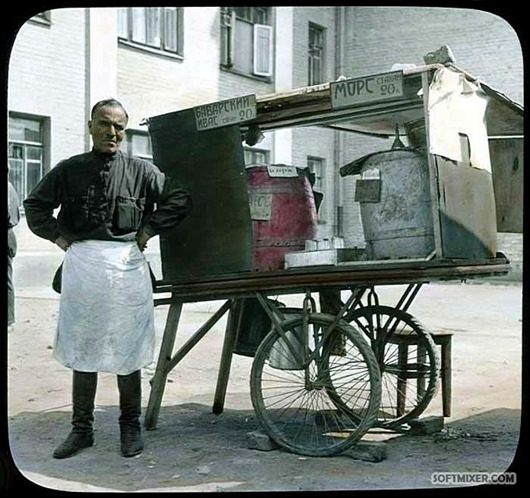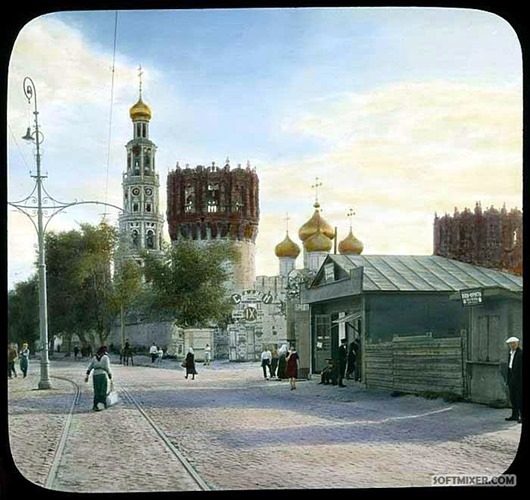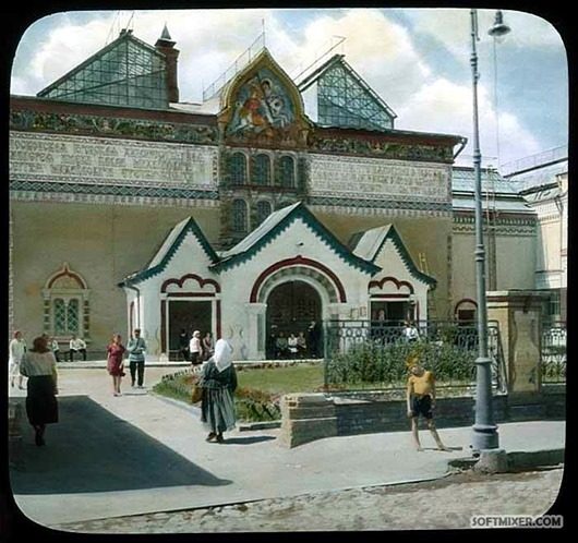 В 1931 году американский фотограф и путешественник Брэнсон ДеКу путешествовал по Советскому Союзу, где сделал около 10 000 снимков для своих лекций. Цветную фотографию в то время еще не изобрели, поэтому фото-пластины для проектора расписывались вручную.