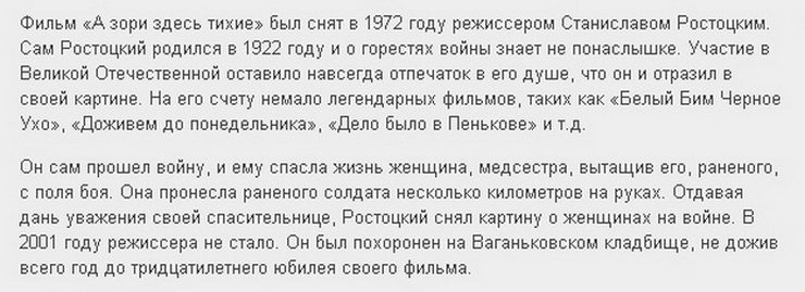 Несколько фактов о советском фильме “А зори здесь тихие”