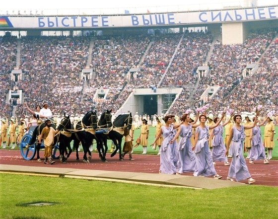 Традиция проведения крупных комплексных спортивных соревнований уходит корнями в Древнюю Грецию. С 776 г. до н. э. по 394 г. н. э. в святилище Олимпии прошли 293 самых важных эллинских национальных празднества. Современное продолжение доброго начинания стало возможным благодаря инициативе одного француза, в конце XIX отличившегося бурной общественной деятельностью. Его имя – Пьер де Кубертен. Первые после возобновления летние игры прошли в апреле 1896 года в Афинах. Впоследствии проводились регулярно, каждое четырехлетие, исключая пору общемировых катаклизмов. Дождались своего часа и XXII Олимпийские игры. В Москве под ликование трибун 19 июля 1980 года на огромную арену стадиона «Лужники» вышли «древние греки»: простые парни и девушки в тогах и хитонах. Их сопровождали «античные» двухколесные колесницы с четырьмя запряженными конями каждая. Эта была дань уважения древней земле Эллады, вечному духу Олимпиады. Стоит сказать, что во время церемонии открытия (равно как и закрытия) частью действия была восточная трибуна. Шапочки, манишки, флажки в руках волонтеров складывались в тематические картины, порою довольно сложные (174 сюжета)