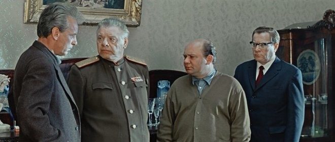 Неожиданная для многих роль Леонова – человек, в глаза которому попал осколок кривого зеркала, и после этого он потерял способность быть человеком – сострадать, понимать, прощать, любить. А на ответственном посту, который он занимает, быть человеком не менее важно, чем быть со своей большой семьёй. Васин сначала морально уничтожает всех своих домашних, а потом устраивает крестовый поход во все социальные сферы, где он хоть что-то значит. Великий гуманист Данелия показывает, что если ты перестаёшь быть человеком, то побеждаешь совсем недолго, но потом всё равно гибнешь. А Евгений Леонов играет одну из своих лучших и самых трудных ролей – притворяется, что у его героя не осталось сочувствия к людям.