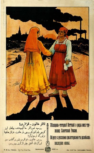 «Женщина-татарка! Вступай в ряды всех тружениц Советской России. Об руку с русскими пролетарками ты разобьешь последние оковы»