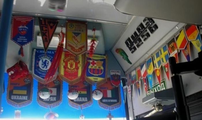Тема — баян. Подобный «тюнинг» (за исключением решеток на фары, оплетки руля и ручки КПП) применяли в основном представители южных республик и автобусники. А еще у них была мода — мелочь под резинку лобового стекла вставлять.