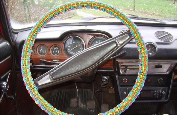 оплетка на руле вполне себе практичный тюнинг, без оплетки руль ну очень тонкий, еще у деда на москвиче была розочка на ручке кпп, в остальном сток, еще он делал сетку на оптику, но почему то не стал ставить