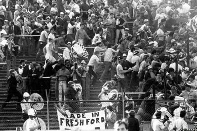 Да, жуткая трагедия, смотрел прямую трансляцию, конечно замолчали… фото ч/б со стадиона «Эйзель» в Брюсселе, во время финала Кубка чемпионов 1985года: Ювентус — Ливерпуль 1-0… как раз момент, когда англичане пробиваются в сектор итальянских тиффози… погибли 39 человек(((