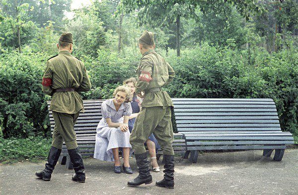 Ночь. Одинокий пешеход идет по улице. Москва. Солдат кричит ему остановится. Пешеход бежит, солдат стреляет. Другой его спрашивает: