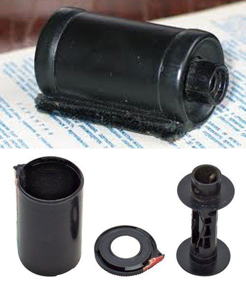 Так вот, в полной темноте – в ванной комнате или с намотанными на руку одеялами – надо было плёнку вынуть из упаковки и намотать на маленькую бобину вроде катушки для ниток, затем вставить бобину в кассету и закрыть крышечку. Чтобы научиться этому, сперва тренировались на уже проявленных отснятых плёнках на свету. И только после того, как плёнка заряжена в кассету, её можно было вставлять в фотоаппарат.
