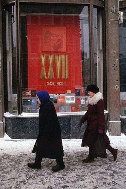 Фото очень широкого временного диапазона. В основном 60-79-е, но витрине книжного упоминается 27-й съезд КПСС, а это середина 80-х.