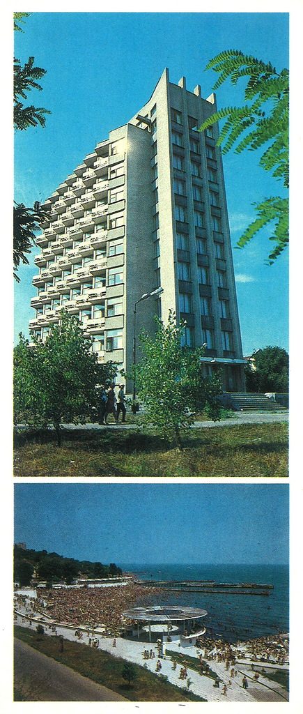 17. Один из корпусов санатория «Россия». Пляж в Аркадии.