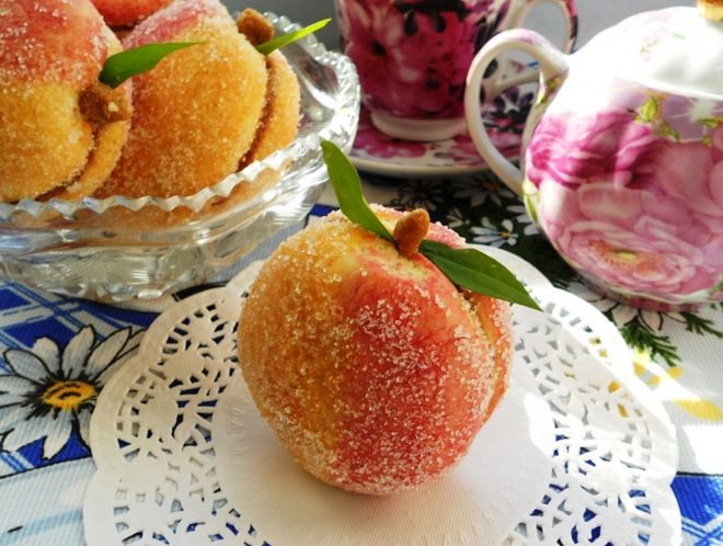 Еще одно пирожное, которое практически забыто – «персики». Для его приготовления брали два печенья, которые соединяли между собой при помощи слоя джема. После этого его подкрашивали натуральными красителями и обваливали в сахаре. Кому захотелось свеженьких «персиков»?
