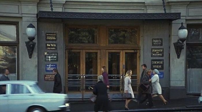 11. Кадр из фильма «Служебный роман». Управление статистики, в котором работали Новосельцев и Калугина. Здание на Петровке, 3/6. Статуправление из «Служебного романа» «перепрофилировано» в ресторан.
