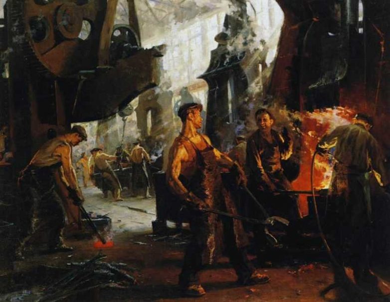 Термин «соцреализм» официально появился в 1934 году, после употребления его Горьким на Первом съезде советских писателей, далее он уже плотно вошел во все сферы искусства, в том числе и живопись.