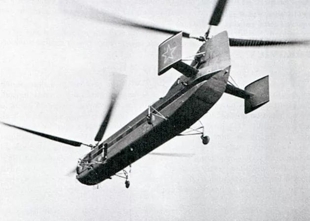 Впервые в СССР на этом вертолете применена продольная схема размещения винтов. Два огромных четырехлопастных винта расположены в носовой и хвостовой частях фюзеляжа. Они вращаются в разные стороны. Их приводят в движение два мощных авиационных мотора, соединенных синхронным валом.