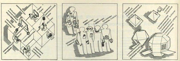 Идея сотрудников ВНИИТЭ была такая: отказаться от телевизоров, магнитофонов, компьютеров и прочих устройств как от самодостаточных девайсов, заменив их функциональными блоками, объединенными в систему.