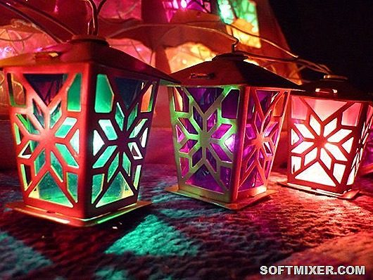 Здесь была особая технология: на патрончики крепились решётчатые фонарики отштампованные из латуни. Внутрь вставлялся цилиндр из цветной плёнки (кстати, цвета почти те же что и на обычных лампочках).
