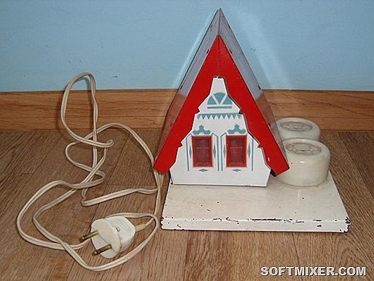 Прерыватель в виде домика, мог поочерёдно переключать две гирлянды. Однако красота мигания особо не отличалась, прерыватель мог либо просто по отдельности включать один из приборов, либо обеспечивать мигание по три раза, в течение 1-1.5 секунды. Не густо. Но на те времена это было уже что-то!