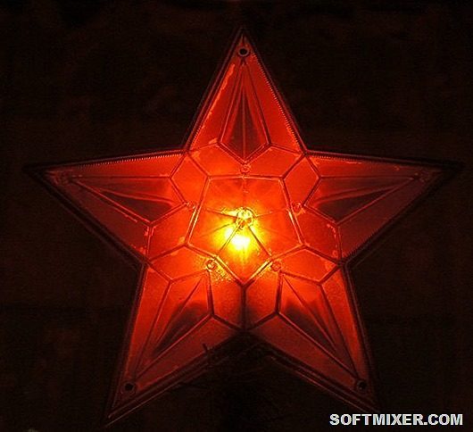 По мимо электрогирлянд, некоторые заводы выпускали ещё и прочие светоукрашения для ёлок. Они были разного назначения, но смысл один – внутри фигуры лампочка, а сама фигура как правило, выполнялась из цветных материалов. Например, выпускались некоторое количество разных звёзд, похожих на кремлёвские, мотив ясен.
