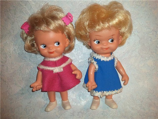 А у меня были куклы, точно первая и вторая ( фото), посуда, кухня, газ. плита, стир. машинка на батарейках. Класс…