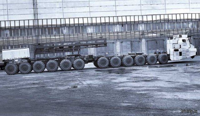 Для создания ядерного щита в СССР не жалели никаких ресурсов. Так в 80-х годах появился огромный 24-колесный МАЗ, предназначенный для транспортировки и запуска межконтинентальных ракет, способных поразить США.