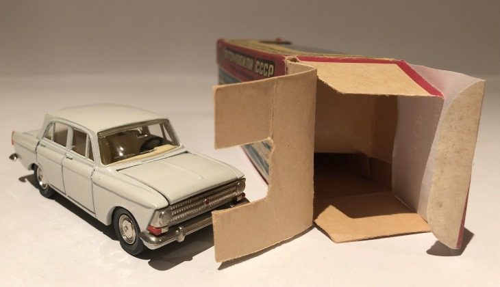 Началом эры советских масштабных моделей можно считать 1969 год, когда ПО «Тантал», расположенное в Саратовской области, изготовило первые машинки. А уже в 1971 году выпустили первую уменьшенную копию в наиболее популярном масштабе 1:43 — «Москвич-412». Ныне он известен как «цельнолитой»: кузов, решетка радиатора, фары и бампер являются единой деталью, а детализацию придают имитация кузовных зазоров и окраска передка «серебрянкой». Также присутствует и салон, который можно разглядеть через стекла. Открывается только капот, под которым располагается макет двигателя. Цена в 3 рубля 50 копеек, выбитая, как в то время было принято, на дне модели, многократно выросла за эти годы, и сегодня за такой «Москвич» в зависимости от состояния могут просить и 20 и 200 тысяч рублей. За такие деньги вполне можно купить «живой» полноразмерный аналог. Возможно, даже не один.