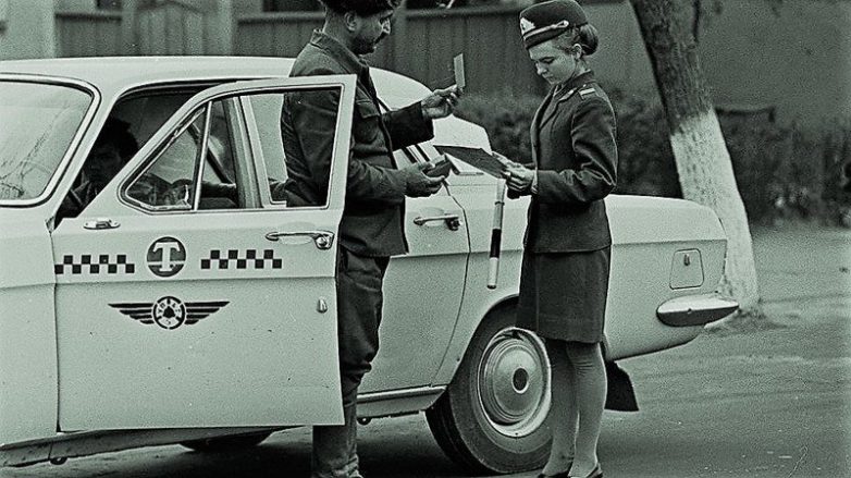 (Сотрудник ГАИ Наталья Павшина проверяет документы у таксиста. 1974 год)К концу 1980-х в Москве насчитывался 21 таксопарк. Работать в такси было престижно, но непросто. Смена длилась 14-16 часов (например, в Москве в 1980-е — с 16:00 до 06:00 или с 06:00 до 20:00).