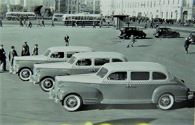 (Такси у Московского вокзала «Ленинград», 1945 год)