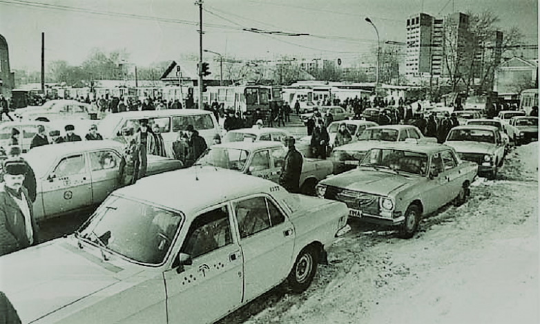 (На площади перед Центральным колхозным рынком г. Перми водители такси организовали пикет в связи с невниманием к их проблемам городских властей. 1992 год)Но еще важнее для таксиста были отношения с начальником колонны и механиком колонны. Они решали, к кому подсадить, какой автомобиль дать, ведь на машину приходилось два таксиста, работавших посменно.