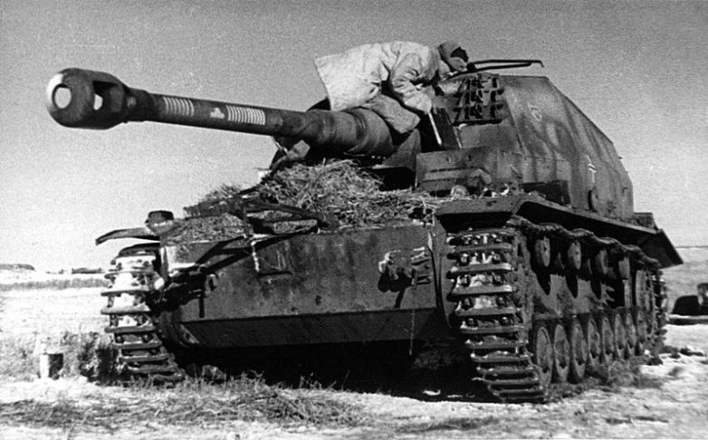 Брошенное немецкое самоходное орудие Sturmpanzer IV с тактическим номером «222»