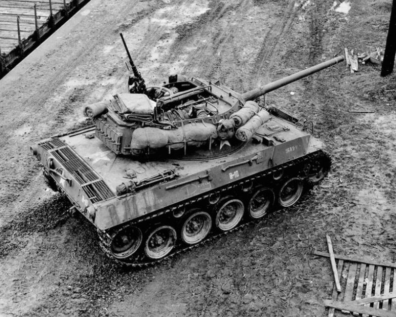 Американская противотанковая САУ M10 «Вулверайн» (Wolverine) из состава 773-го противотанкового батальона армии США (773rd tank destroyer battalion) на опушке леса в районе бельгийской деревни Беноншам (Benonchamps). Данной САУ под командованием сержанта Джейкоба Кретчика (Sgt. Jacob Kretchik) приписывают поражение пяти немецких танков во время контратаки возле Обервампаха (Oberwampach, Люксембург).