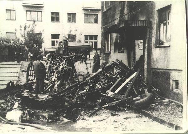 Остатки хвоста и фюзеляжа остались лежать у подъездной двери