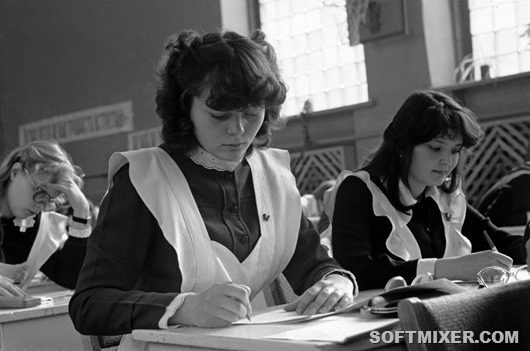 Школьники пишут сочинение на выпускном экзамене. 1 июня 1984 года