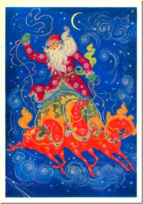 Руки у него постоянно заняты делом — возможно, поэтому Дед Мороз значительно реже несет мешок с подарками…». Кстати, книга Е. Иванова «Новый год и Рождество в открытках», в которой совершенно серьезно анализируются сюжеты открыток с точки зрения их особого символизма, доказывает, что в обычной почтовой карточке таится гораздо больше смысла, чем это может показаться на первый взгляд…