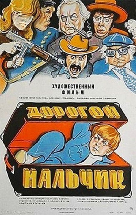 Это фильм Александра Стефановича «Дорогой мальчик», вышедший на экраны в 1975 году. Сказать, что этот фильм выделялся на общем фоне — ничего не сказать. Первый (и наверное единственный) советский кинокомикс. Пародия на криминальные детективы тех лет. Психоделика в оформлении музыкальных вставок. Да и сами музыкальные вставки с музыкой Давида Тухманова на слова Леонида Дербенёва в исполнении группы «Водограй» совсем не характерны для детских фильмов тех лет