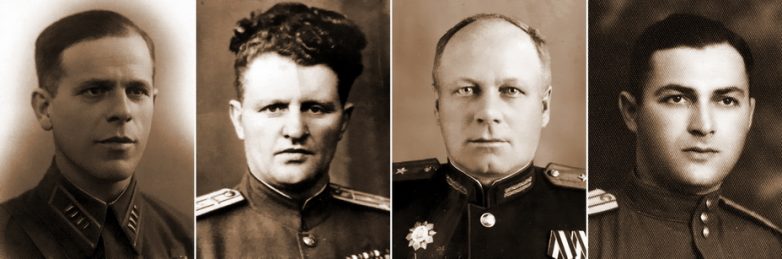 Офицеры 64-й армии, слева направо: начальник оперативного отдела Г.С. Лукин (МЗСБ), заместитель начальника штаба по политической части Б.И. Мутовин (МЗСБ), начальник разведотдела И.М. Рыжов (ЦАМО), начальник 7-го отделения политотдела Я.М. Головчинер (архив семьи Головчинер)