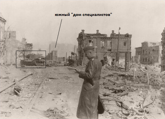 Берег Волги чуть южнее. Так называемые «дома специалистов» будут захвачены передовыми отрядами 71-й пехотной дивизии 14 сентября и будут удерживаться вплоть до окончания боёв в городе. Здание Госбанка в сентябрьских боях будет переходить из рук в руки, но в результате останется за немцами