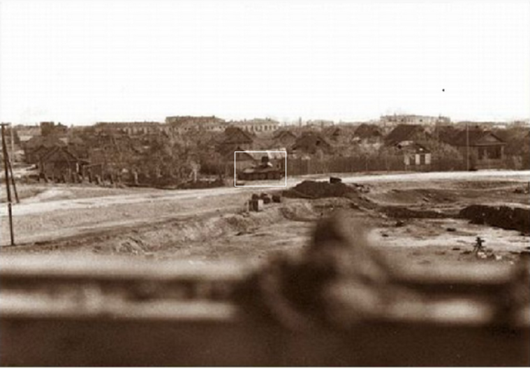Одна из уничтоженных машин 6-й ТБр, перекрёсток улиц Невской и Карской, «заполотновский» район. Фото из книги В. Вюстера «В аду Сталинграда»