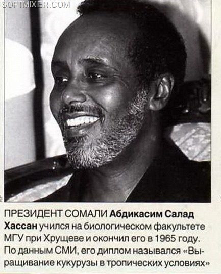 Президент Сомали Абдикасим Салад Хассан учился на биологическом факультете МГУ при Хрущеве и окончил его в 1965 году. По данным некоторых СМИ, его дипломная работа называлась «Выращивание кукурузы в тропических условиях»