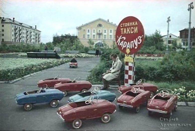 37. Мечта дошкольника. Прокат машинок «Карапуз» у кинотеатра «Мир» в Архангельске, 1970-е.