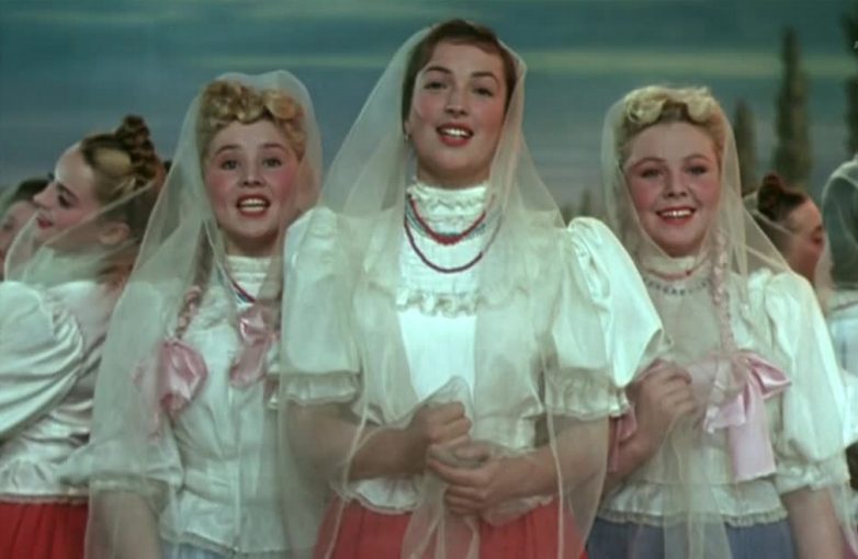 Женский ансамбль колхоза «Верный путь» и молодые парни со всего Союза