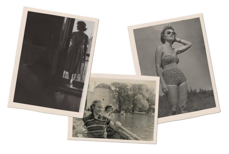На фотографии на мне жатый купальник по последней моде. С большой вероятностью его привезли мне эстонские подружки. На другом снимке — приталенное платье, сшила его сама, очень любила и носила по любому поводу. На фото в лодке на мне кофта, связанная бабушкой, — говорят, такие сегодня называются поло.