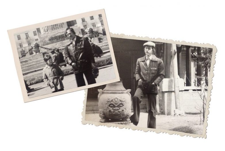Вообще все вещи мы сами делали, если хотели выглядеть как-то прилично и стильно. Вот и на этих фотографиях в Улан-Баторе я в брюках и кепке, которые сшил сам. Кепок таких сделал несколько, разных расцветок и пускал их в ротацию. А вот курточки на нас с сыном японские.