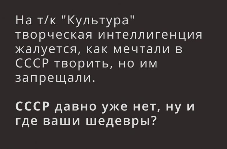 Замечательно было. А творческая интеллигенция только грызется, делит наследство, не признает нагуленных детей и топит друг друга. А теперь толпятся на митингах, стараясь встать поближе к телу, а потом будут плакать и говорить, что их заставили. И так всегда: при Сталине, при Хрущове, при Брежневе и т.д.