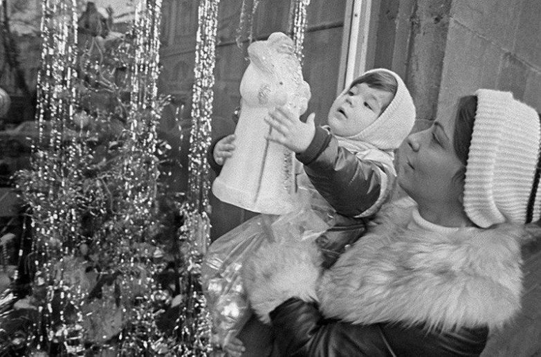 Мама с дочкой выбирают игрушку — Деда Мороза. СССР. 1981 год