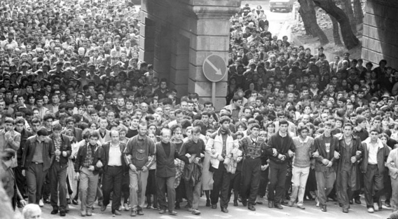 «Ленин» по-грузински кричал «Слава великому Сталину!» В Тбилиси на улицах собралось уже до сорока тысяч человек. В конце концов было решено отправить группу человек в десять митингующих в Дом связи. Зачем — тут показания расходятся. Согласно одной из версий, люди собирались отправить телеграмму Молотову — некогда одному из самых преданных Сталину людей, у которого как раз был день рождения. По другим данным, это, наоборот, были радикалы, которые хотели объявить о выходе Грузии из СССР. Чего они не знали, так это того, что на время беспорядков туда ввели небольшой воинский отряд с оружием.