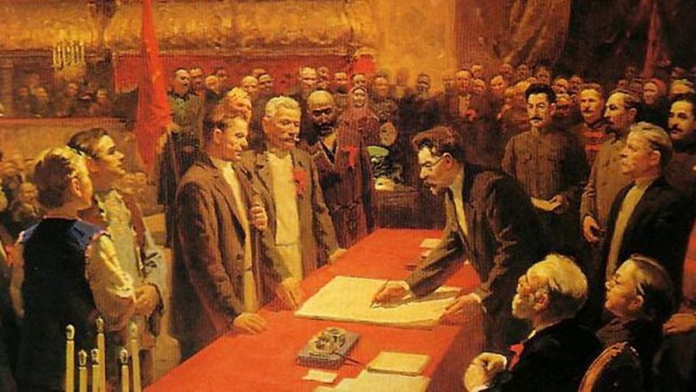 За пару дней до начала нового, 1923 года, на I съезде Советов представители РСФСР, Украинской и Белорусской советских социалистических республик подписали декларацию об образовании СССР.